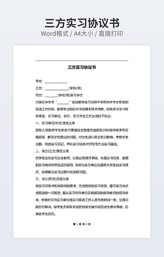 本作品内容为酒店实习协议书模板下载,大小为17.6KB,作品为高清大图模板,格式为docx, 属于实习协议模板,作品模板源文件下载后可用编辑替换,模板中如有人物画像仅供参考禁止商用。小Q办公网-提供简历,PPT,Word,Excel优质模板素材下载模版平台,拥有海量的工作总结、竞聘求职、年终颁奖、计划书等。 通过小Q办公网下载实习协议模板源文件编辑修改源文件文字和图片即可使用。