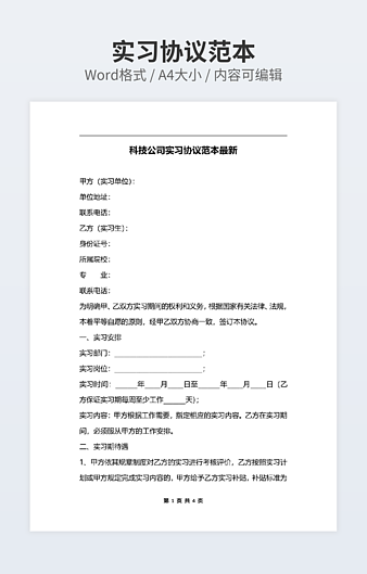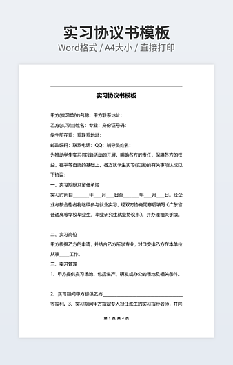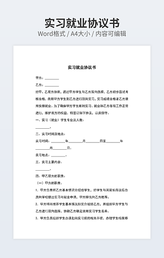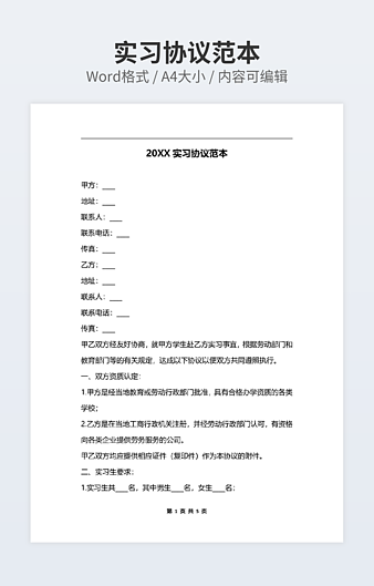 本作品内容为酒店实习协议范本最新下载,大小为19.23KB,作品为高清大图模板,格式为docx, 属于实习协议模板,作品模板源文件下载后可用编辑替换,模板中如有人物画像仅供参考禁止商用。小Q办公网-提供简历,PPT,Word,Excel优质模板素材下载模版平台,拥有海量的工作总结、竞聘求职、年终颁奖、计划书等。 通过小Q办公网下载实习协议模板源文件编辑修改源文件文字和图片即可使用。