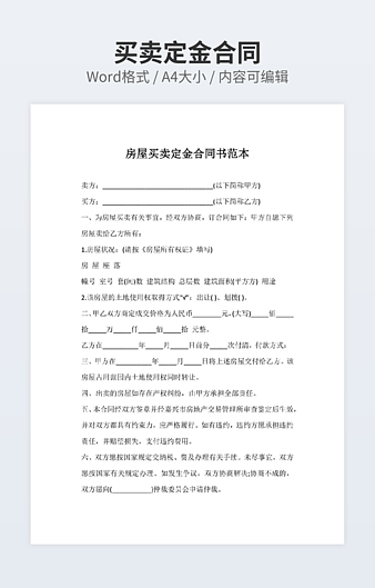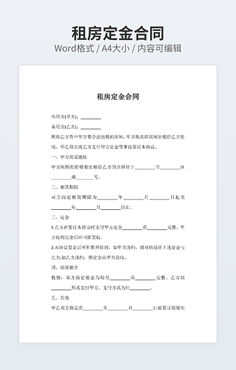 【特殊限制】设计师仅对作品中独创性部分享有著作权,对作品中含有的国旗、国徽等政治图案不享有权利,仅作为作品整体效果的示例展示,禁止商用。 相关关键词: 房屋出租 定金 合同文本
