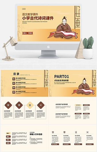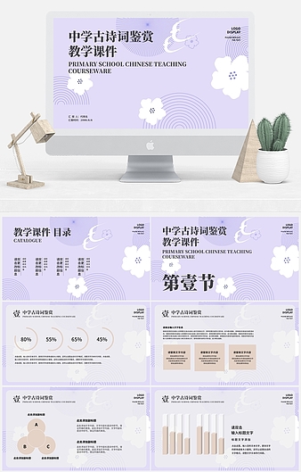 【特殊限制】设计师仅对作品中独创性部分享有著作权,对作品中含有的国旗、国徽等政治图案不享有权利,仅作为作品整体效果的示例展示,禁止商用。 相关关键词: 古诗词 教育教学 汇报 PPT 模板 优秀