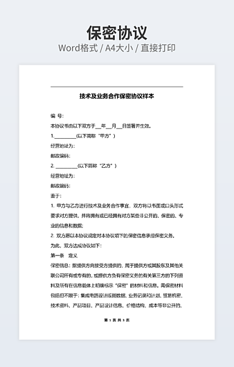 本作品内容为动力电池技术合作协议书范本下载,大小为18.88KB,作品为高清大图模板,格式为docx, 属于技术合作模板,作品模板源文件下载后可用编辑替换,模板中如有人物画像仅供参考禁止商用。小Q办公网-提供简历,PPT,Word,Excel优质模板素材下载模版平台,拥有海量的工作总结、竞聘求职、年终颁奖、计划书等。 通过小Q办公网下载技术合作模板源文件编辑修改源文件文字和图片即可使用。