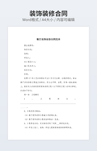 【特殊限制】设计师仅对作品中独创性部分享有著作权,对作品中含有的国旗、国徽等政治图案不享有权利,仅作为作品整体效果的示例展示,禁止商用。 相关关键词: 个人 房屋装修 合同 样式