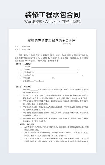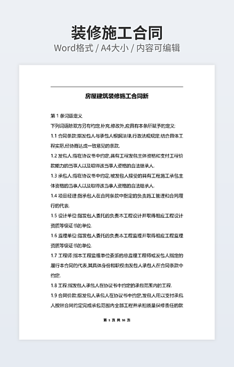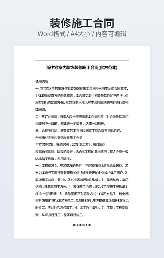 本作品内容为住宅装修合同下载,大小为12.88KB,作品为高清大图模板,格式为doc, 属于房屋装修模板,作品模板源文件下载后可用编辑替换,模板中如有人物画像仅供参考禁止商用。小Q办公网-提供简历,PPT,Word,Excel优质模板素材下载模版平台,拥有海量的工作总结、竞聘求职、年终颁奖、计划书等。 通过小Q办公网下载房屋装修模板源文件编辑修改源文件文字和图片即可使用。
