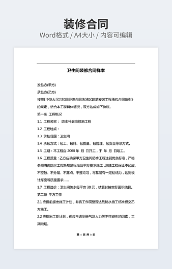 本作品内容为装修队装修合同下载,大小为15.74KB,作品为高清大图模板,格式为docx, 属于房屋装修模板,作品模板源文件下载后可用编辑替换,模板中如有人物画像仅供参考禁止商用。小Q办公网-提供简历,PPT,Word,Excel优质模板素材下载模版平台,拥有海量的工作总结、竞聘求职、年终颁奖、计划书等。 通过小Q办公网下载房屋装修模板源文件编辑修改源文件文字和图片即可使用。