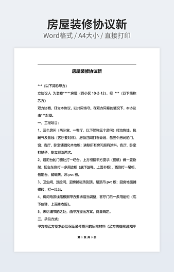 本作品内容为饭店装修合同范本下载,大小为26.68KB,作品为高清大图模板,格式为doc, 属于房屋装修模板,作品模板源文件下载后可用编辑替换,模板中如有人物画像仅供参考禁止商用。小Q办公网-提供简历,PPT,Word,Excel优质模板素材下载模版平台,拥有海量的工作总结、竞聘求职、年终颁奖、计划书等。 通过小Q办公网下载房屋装修模板源文件编辑修改源文件文字和图片即可使用。