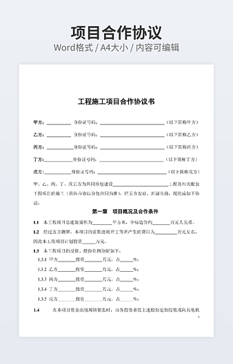 本作品内容为合作经营合同范本下载,大小为32.81KB,作品为高清大图模板,格式为docx, 属于经营合作模板,作品模板源文件下载后可用编辑替换,模板中如有人物画像仅供参考禁止商用。小Q办公网-提供简历,PPT,Word,Excel优质模板素材下载模版平台,拥有海量的工作总结、竞聘求职、年终颁奖、计划书等。 通过小Q办公网下载经营合作模板源文件编辑修改源文件文字和图片即可使用。