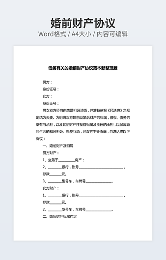 【特殊限制】设计师仅对作品中独创性部分享有著作权,对作品中含有的国旗、国徽等政治图案不享有权利,仅作为作品整体效果的示例展示,禁止商用。 相关关键词: 夫妻 婚内 购房 协议书