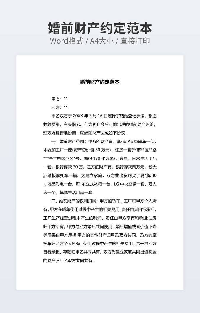 【特殊限制】设计师仅对作品中独创性部分享有著作权,对作品中含有的国旗、国徽等政治图案不享有权利,仅作为作品整体效果的示例展示,禁止商用。 相关关键词: 婚内 财产 约定 协议