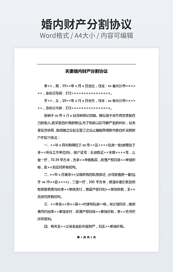 本作品内容为婚内贷款约定协议下载,大小为14.12KB,作品为高清大图模板,格式为docx, 属于婚内协议模板,作品模板源文件下载后可用编辑替换,模板中如有人物画像仅供参考禁止商用。小Q办公网-提供简历,PPT,Word,Excel优质模板素材下载模版平台,拥有海量的工作总结、竞聘求职、年终颁奖、计划书等。 通过小Q办公网下载婚内协议模板源文件编辑修改源文件文字和图片即可使用。