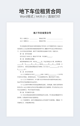 【特殊限制】设计师仅对作品中独创性部分享有著作权,对作品中含有的国旗、国徽等政治图案不享有权利,仅作为作品整体效果的示例展示,禁止商用。 相关关键词: 地下 停车位 出租 租赁 合同