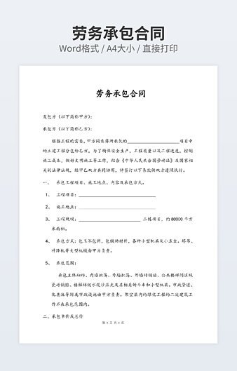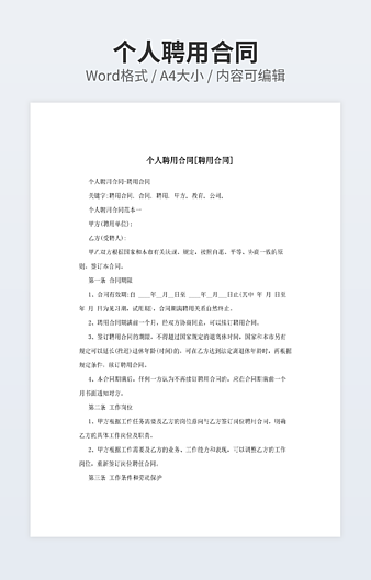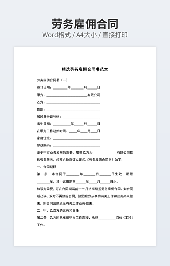 本作品内容为临时工合同范文下载,大小为18.27KB,作品为高清大图模板,格式为docx, 属于劳务合同模板,作品模板源文件下载后可用编辑替换,模板中如有人物画像仅供参考禁止商用。小Q办公网-提供简历,PPT,Word,Excel优质模板素材下载模版平台,拥有海量的工作总结、竞聘求职、年终颁奖、计划书等。 通过小Q办公网下载劳务合同模板源文件编辑修改源文件文字和图片即可使用。
