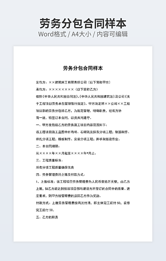【特殊限制】设计师仅对作品中独创性部分享有著作权,对作品中含有的国旗、国徽等政治图案不享有权利,仅作为作品整体效果的示例展示,禁止商用。 相关关键词: 劳务 雇佣 合同书 范文