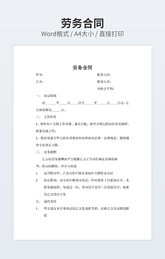 本作品内容为建筑施工劳务承包合同常用范本下载,大小为22.66KB,作品为高清大图模板,格式为docx, 属于劳务合同模板,作品模板源文件下载后可用编辑替换,模板中如有人物画像仅供参考禁止商用。小Q办公网-提供简历,PPT,Word,Excel优质模板素材下载模版平台,拥有海量的工作总结、竞聘求职、年终颁奖、计划书等。 通过小Q办公网下载劳务合同模板源文件编辑修改源文件文字和图片即可使用。