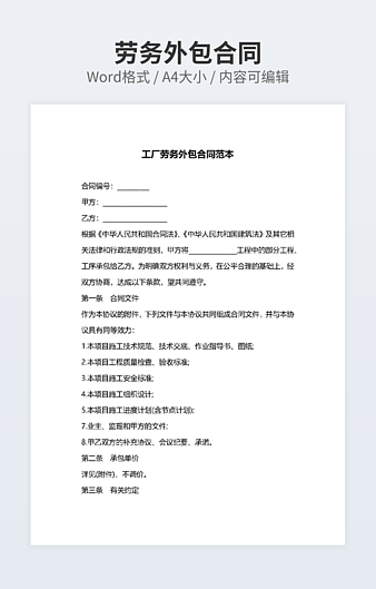 【特殊限制】设计师仅对作品中独创性部分享有著作权,对作品中含有的国旗、国徽等政治图案不享有权利,仅作为作品整体效果的示例展示,禁止商用。 相关关键词: 建筑施工 劳务 承包 合同 常用 范本