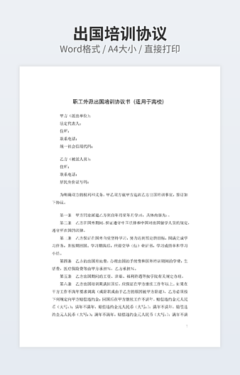 【特殊限制】设计师仅对作品中独创性部分享有著作权,对作品中含有的国旗、国徽等政治图案不享有权利,仅作为作品整体效果的示例展示,禁止商用。 相关关键词: 专项 培训 协议书 范本