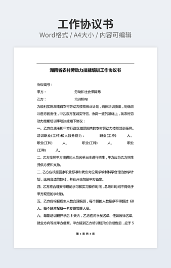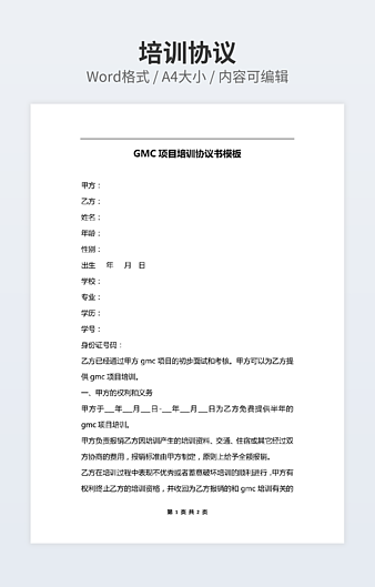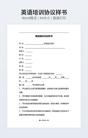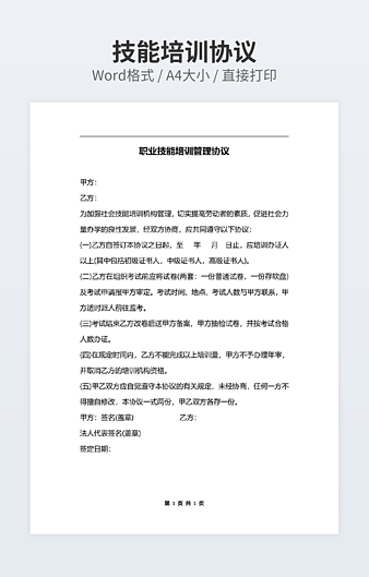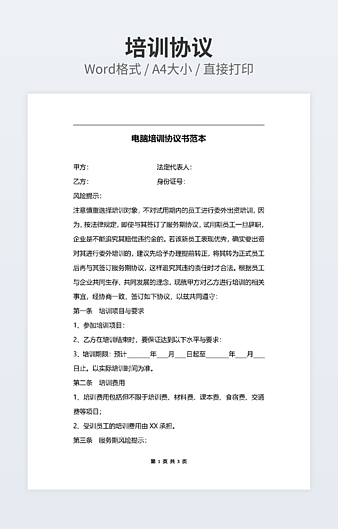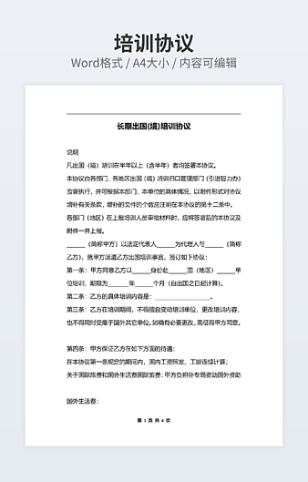 【特殊限制】设计师仅对作品中独创性部分享有著作权,对作品中含有的国旗、国徽等政治图案不享有权利,仅作为作品整体效果的示例展示,禁止商用。 相关关键词: 员工培训 协议 范本 样式