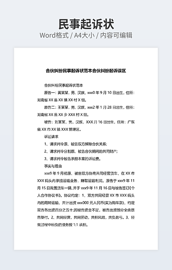 上一篇:医疗纠纷民事起诉状范本下一篇:合伙纠纷民事起诉状范本合伙纠纷起诉误区为您推荐