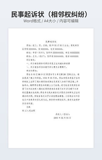 本作品内容为卖房纠纷民事起诉状下载,大小为17.38KB,作品为高清大图模板,格式为docx, 属于民事起诉模板,作品模板源文件下载后可用编辑替换,模板中如有人物画像仅供参考禁止商用。小Q办公网-提供简历,PPT,Word,Excel优质模板素材下载模版平台,拥有海量的工作总结、竞聘求职、年终颁奖、计划书等。 通过小Q办公网下载民事起诉模板源文件编辑修改源文件文字和图片即可使用。