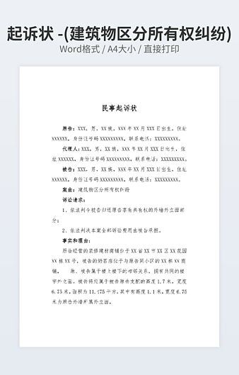 本作品内容为土地纠纷民事起诉状下载,大小为13.87KB,作品为高清大图模板,格式为docx, 属于民事起诉模板,作品模板源文件下载后可用编辑替换,模板中如有人物画像仅供参考禁止商用。小Q办公网-提供简历,PPT,Word,Excel优质模板素材下载模版平台,拥有海量的工作总结、竞聘求职、年终颁奖、计划书等。 通过小Q办公网下载民事起诉模板源文件编辑修改源文件文字和图片即可使用。