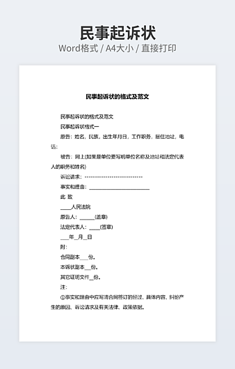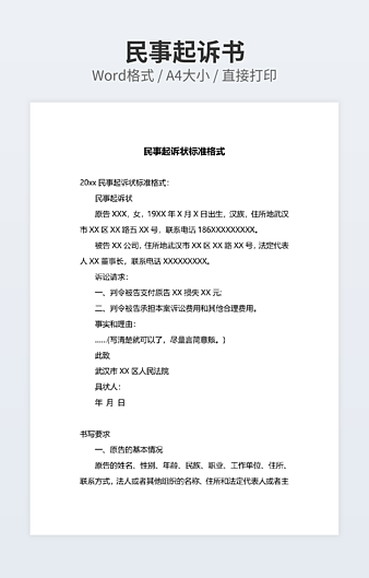 本作品内容为工伤民事起诉状通用版下载,大小为18.07KB,作品为高清大图模板,格式为docx, 属于民事起诉模板,作品模板源文件下载后可用编辑替换,模板中如有人物画像仅供参考禁止商用。小Q办公网-提供简历,PPT,Word,Excel优质模板素材下载模版平台,拥有海量的工作总结、竞聘求职、年终颁奖、计划书等。 通过小Q办公网下载民事起诉模板源文件编辑修改源文件文字和图片即可使用。