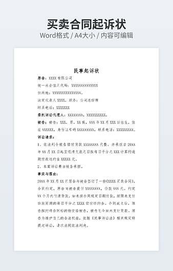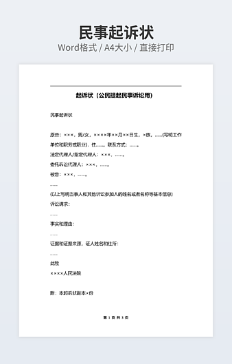 【特殊限制】设计师仅对作品中独创性部分享有著作权,对作品中含有的国旗、国徽等政治图案不享有权利,仅作为作品整体效果的示例展示,禁止商用。 相关关键词: 探视 民事 起诉状