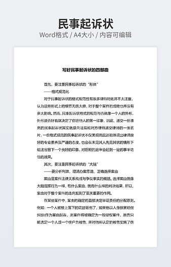 【特殊限制】设计师仅对作品中独创性部分享有著作权,对作品中含有的国旗、国徽等政治图案不享有权利,仅作为作品整体效果的示例展示,禁止商用。 相关关键词: 最新 民事 起诉书 模板 范例