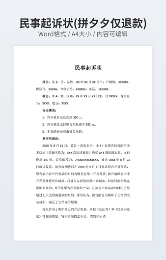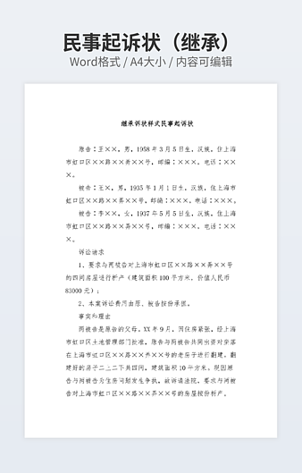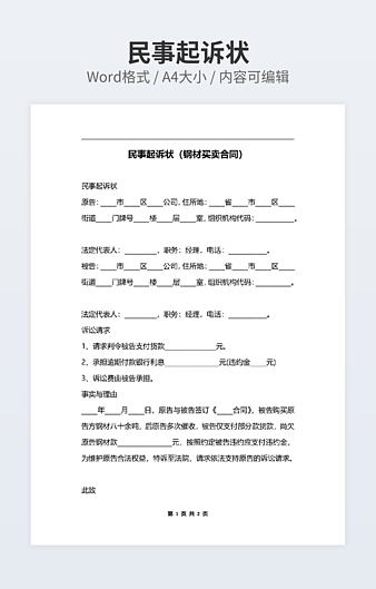【特殊限制】设计师仅对作品中独创性部分享有著作权,对作品中含有的国旗、国徽等政治图案不享有权利,仅作为作品整体效果的示例展示,禁止商用。 相关关键词: 民事 起诉书 模板 标准 格式