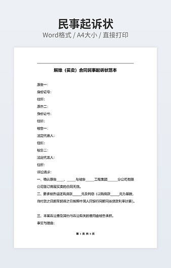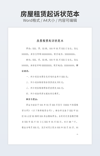 【特殊限制】设计师仅对作品中独创性部分享有著作权,对作品中含有的国旗、国徽等政治图案不享有权利,仅作为作品整体效果的示例展示,禁止商用。 相关关键词: 民事 起诉书 模板 范文