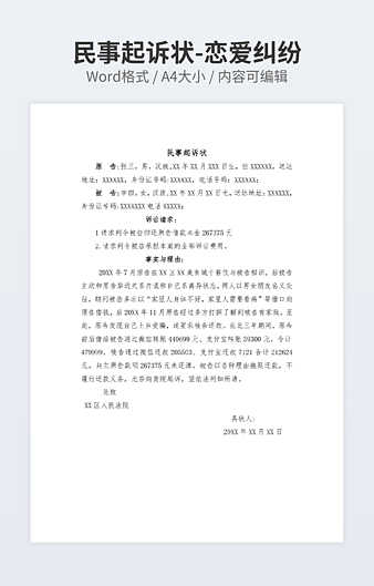 【特殊限制】设计师仅对作品中独创性部分享有著作权,对作品中含有的国旗、国徽等政治图案不享有权利,仅作为作品整体效果的示例展示,禁止商用。 相关关键词: 民事 起诉状 范本