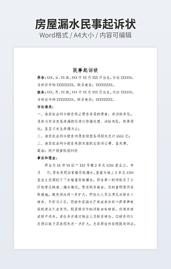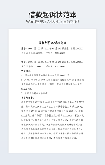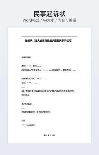 【特殊限制】设计师仅对作品中独创性部分享有著作权,对作品中含有的国旗、国徽等政治图案不享有权利,仅作为作品整体效果的示例展示,禁止商用。 相关关键词: 法律文书 民事 起诉状 书写