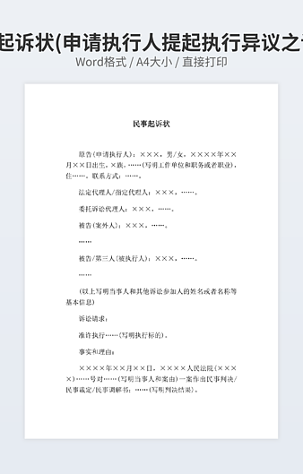 【特殊限制】设计师仅对作品中独创性部分享有著作权,对作品中含有的国旗、国徽等政治图案不享有权利,仅作为作品整体效果的示例展示,禁止商用。 相关关键词: 起诉状 公民 提起 民事诉讼