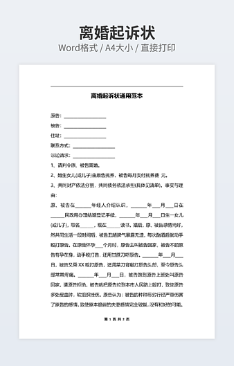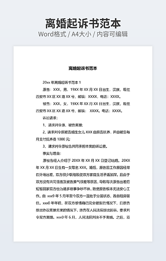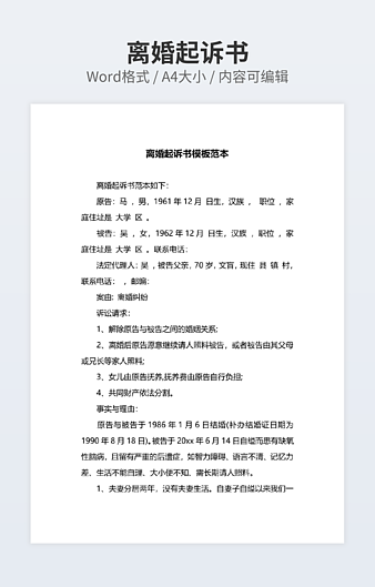 【特殊限制】设计师仅对作品中独创性部分享有著作权,对作品中含有的国旗、国徽等政治图案不享有权利,仅作为作品整体效果的示例展示,禁止商用。 相关关键词: 离婚 起诉状 范文 通用
