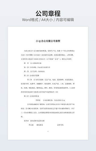 本作品内容为教育咨询管理有限公司章程下载,大小为24.26KB,作品为高清大图模板,格式为docx, 属于公司章程 模板,作品模板源文件下载后可用编辑替换,模板中如有人物画像仅供参考禁止商用。小Q办公网-提供简历,PPT,Word,Excel优质模板素材下载模版平台,拥有海量的工作总结、竞聘求职、年终颁奖、计划书等。 通过小Q办公网下载公司章程 模板源文件编辑修改源文件文字和图片即可使用。