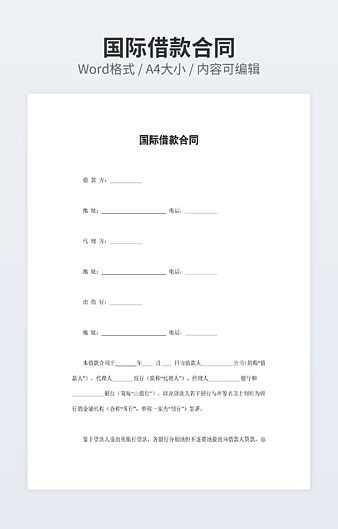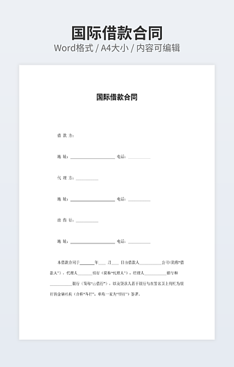 【特殊限制】设计师仅对作品中独创性部分享有著作权,对作品中含有的国旗、国徽等政治图案不享有权利,仅作为作品整体效果的示例展示,禁止商用。 相关关键词: 借款 合同