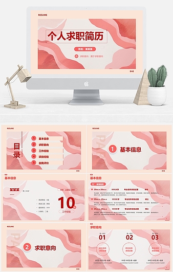 【特殊限制】设计师仅对作品中独创性部分享有著作权,对作品中含有的国旗、国徽等政治图案不享有权利,仅作为作品整体效果的示例展示,禁止商用。 相关关键词: PINK 个人 竞聘 简历 ppt 模板