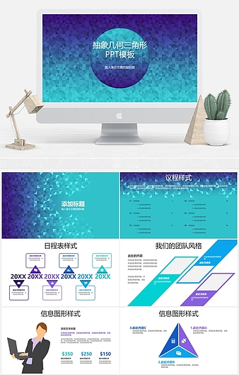 20XX创意彩色图形搭配艺术时尚PPT模板
