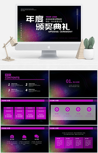【特殊限制】设计师仅对作品中独创性部分享有著作权,对作品中含有的国旗、国徽等政治图案不享有权利,仅作为作品整体效果的示例展示,禁止商用。 相关关键词: 时尚 公司 年会 颁奖典礼 PPT 模板