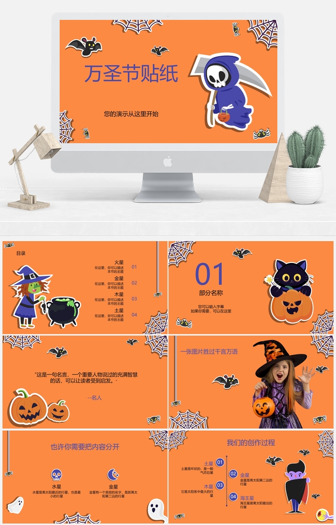 【特殊限制】设计师仅对作品中独创性部分享有著作权,对作品中含有的国旗、国徽等政治图案不享有权利,仅作为作品整体效果的示例展示,禁止商用。 相关关键词: 万圣节 PowerPoint 模板
