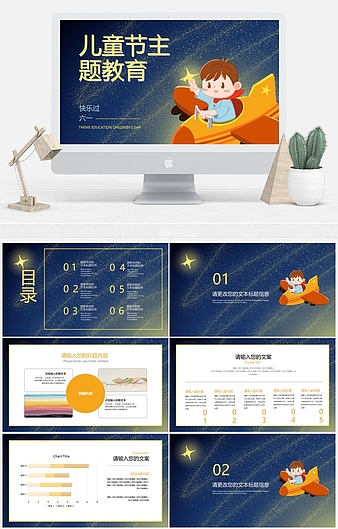 【特殊限制】设计师仅对作品中独创性部分享有著作权,对作品中含有的国旗、国徽等政治图案不享有权利,仅作为作品整体效果的示例展示,禁止商用。 相关关键词: 蓝色 清新 卡通 六一儿童节 PPT 模板