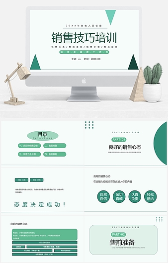 【特殊限制】设计师仅对作品中独创性部分享有著作权,对作品中含有的国旗、国徽等政治图案不享有权利,仅作为作品整体效果的示例展示,禁止商用。 相关关键词: 绿色 简约 销售 人员 心态 培训 PPT 模板