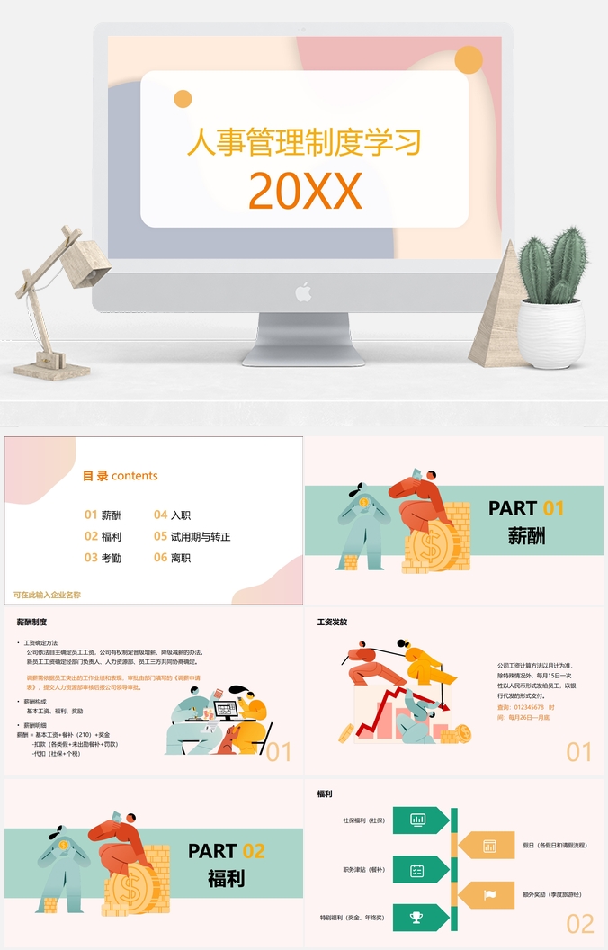 【特殊限制】设计师仅对作品中独创性部分享有著作权,对作品中含有的国旗、国徽等政治图案不享有权利,仅作为作品整体效果的示例展示,禁止商用。 相关关键词: 粉色 背景 绩效 管理 PPT 模板