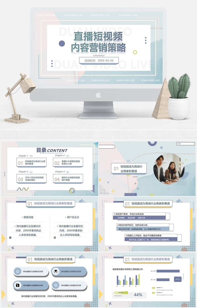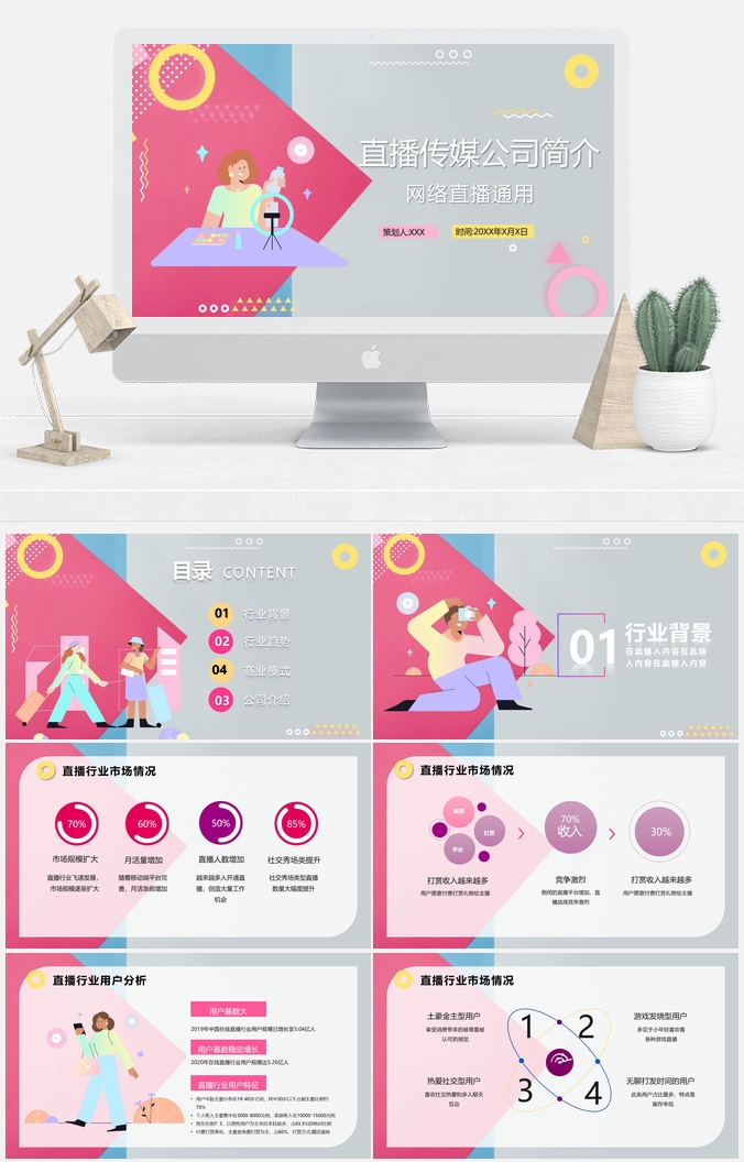 【特殊限制】设计师仅对作品中独创性部分享有著作权,对作品中含有的国旗、国徽等政治图案不享有权利,仅作为作品整体效果的示例展示,禁止商用。 相关关键词: 色彩 科技 音乐节 直播 PPT 模板