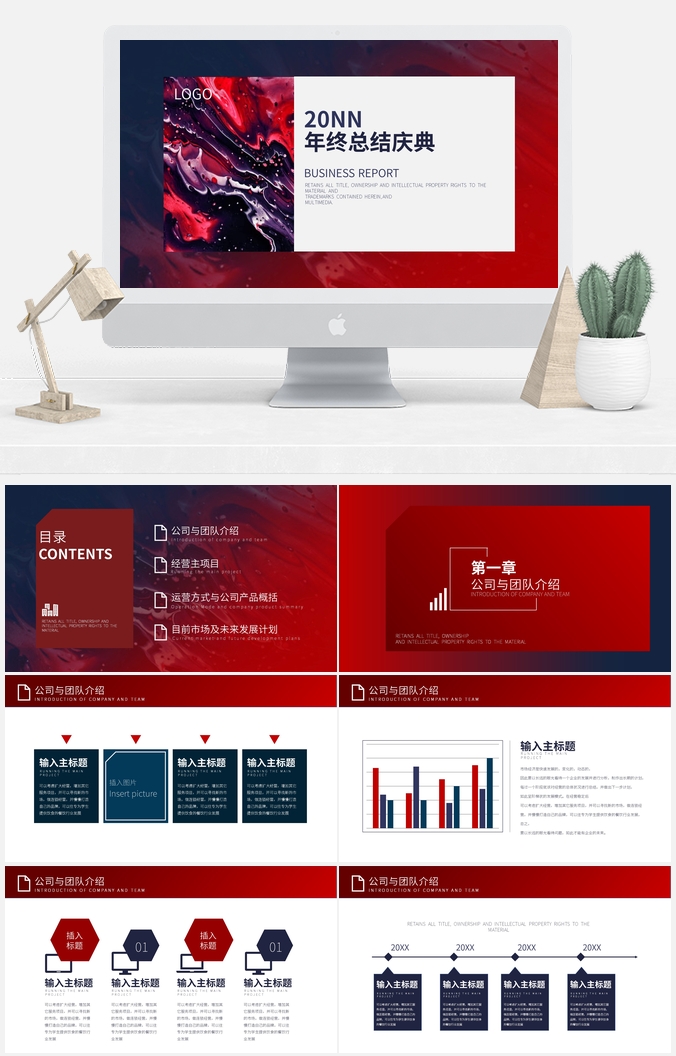 【特殊限制】设计师仅对作品中独创性部分享有著作权,对作品中含有的国旗、国徽等政治图案不享有权利,仅作为作品整体效果的示例展示,禁止商用。 相关关键词: 高级 红灰 简约 商务 年终总结 PPT 模板