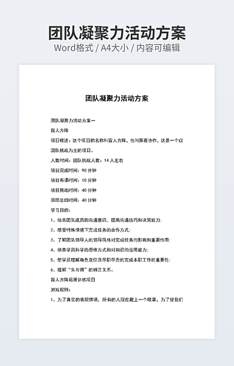 【特殊限制】设计师仅对作品中独创性部分享有著作权,对作品中含有的国旗、国徽等政治图案不享有权利,仅作为作品整体效果的示例展示,禁止商用。 相关关键词: 团建 活动策划 方案