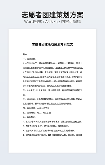 本作品内容为团建活动策划方案下载,大小为18.59KB,作品为高清大图模板,格式为docx, 属于团队建设模板,作品模板源文件下载后可用编辑替换,模板中如有人物画像仅供参考禁止商用。小Q办公网-提供简历,PPT,Word,Excel优质模板素材下载模版平台,拥有海量的工作总结、竞聘求职、年终颁奖、计划书等。 通过小Q办公网下载团队建设模板源文件编辑修改源文件文字和图片即可使用。