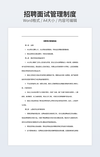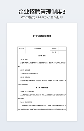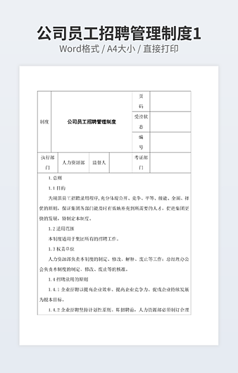 【特殊限制】设计师仅对作品中独创性部分享有著作权,对作品中含有的国旗、国徽等政治图案不享有权利,仅作为作品整体效果的示例展示,禁止商用。 相关关键词: 员工 招聘 管理制度 范本