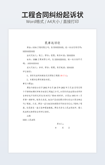 本作品内容为健身退款起诉状下载,大小为17.09KB,作品为高清大图模板,格式为docx, 属于民事起诉模板,作品模板源文件下载后可用编辑替换,模板中如有人物画像仅供参考禁止商用。小Q办公网-提供简历,PPT,Word,Excel优质模板素材下载模版平台,拥有海量的工作总结、竞聘求职、年终颁奖、计划书等。 通过小Q办公网下载民事起诉模板源文件编辑修改源文件文字和图片即可使用。