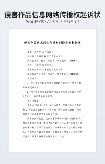 本作品内容为房屋漏水民事起诉状下载,大小为11.71KB,作品为高清大图模板,格式为docx, 属于民事起诉模板,作品模板源文件下载后可用编辑替换,模板中如有人物画像仅供参考禁止商用。小Q办公网-提供简历,PPT,Word,Excel优质模板素材下载模版平台,拥有海量的工作总结、竞聘求职、年终颁奖、计划书等。 通过小Q办公网下载民事起诉模板源文件编辑修改源文件文字和图片即可使用。
