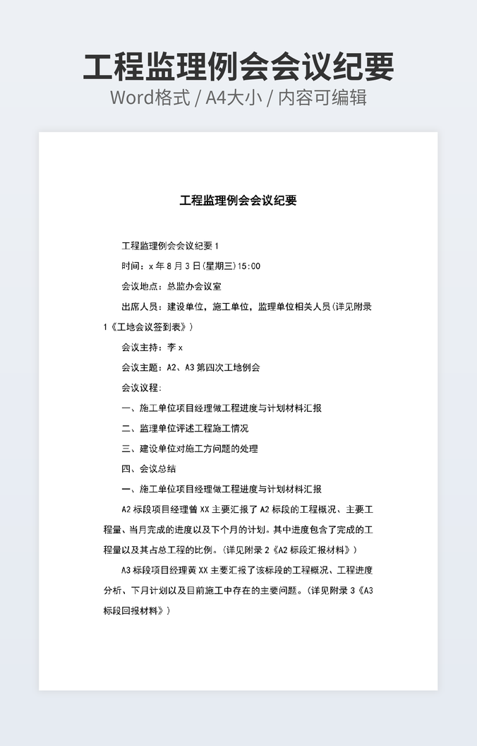 【特殊限制】设计师仅对作品中独创性部分享有著作权,对作品中含有的国旗、国徽等政治图案不享有权利,仅作为作品整体效果的示例展示,禁止商用。 相关关键词: 会议纪要 工作安排
