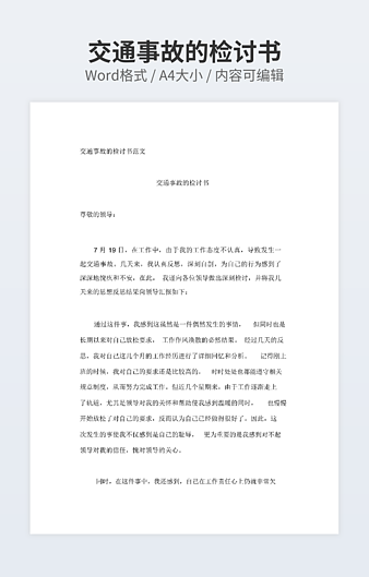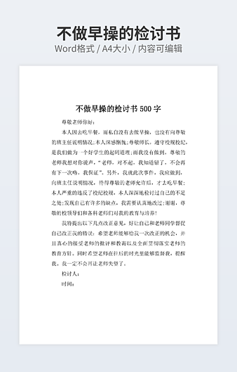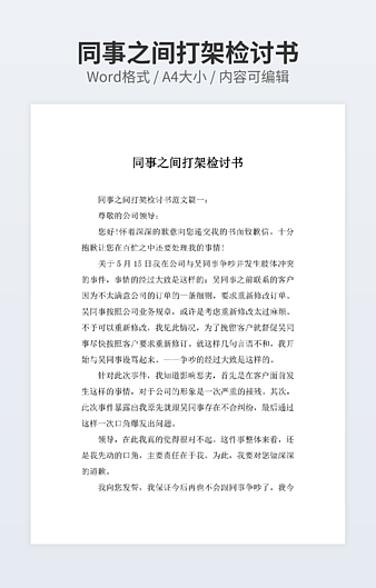 本作品内容为上班时打牌检讨书下载,大小为13.54KB,作品为高清大图模板,格式为docx, 属于检讨书模板,作品模板源文件下载后可用编辑替换,模板中如有人物画像仅供参考禁止商用。小Q办公网-提供简历,PPT,Word,Excel优质模板素材下载模版平台,拥有海量的工作总结、竞聘求职、年终颁奖、计划书等。 通过小Q办公网下载检讨书模板源文件编辑修改源文件文字和图片即可使用。